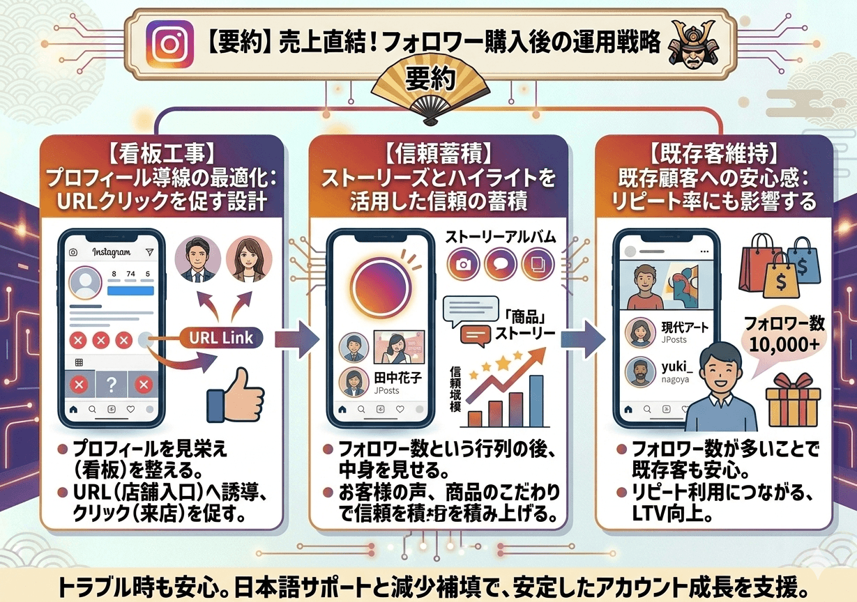 フォロワーを購入して見た目を整えたら、次はその数字を具体的な「売上」に変換するための運用が必要です。